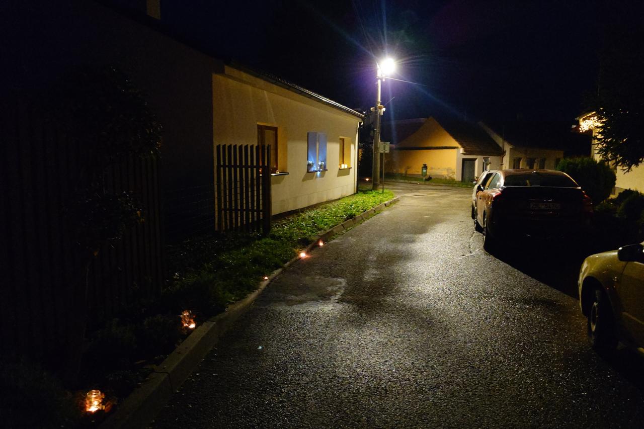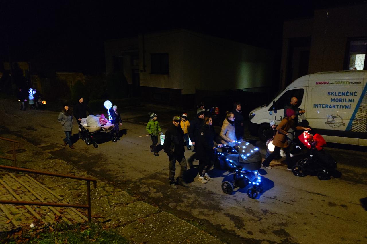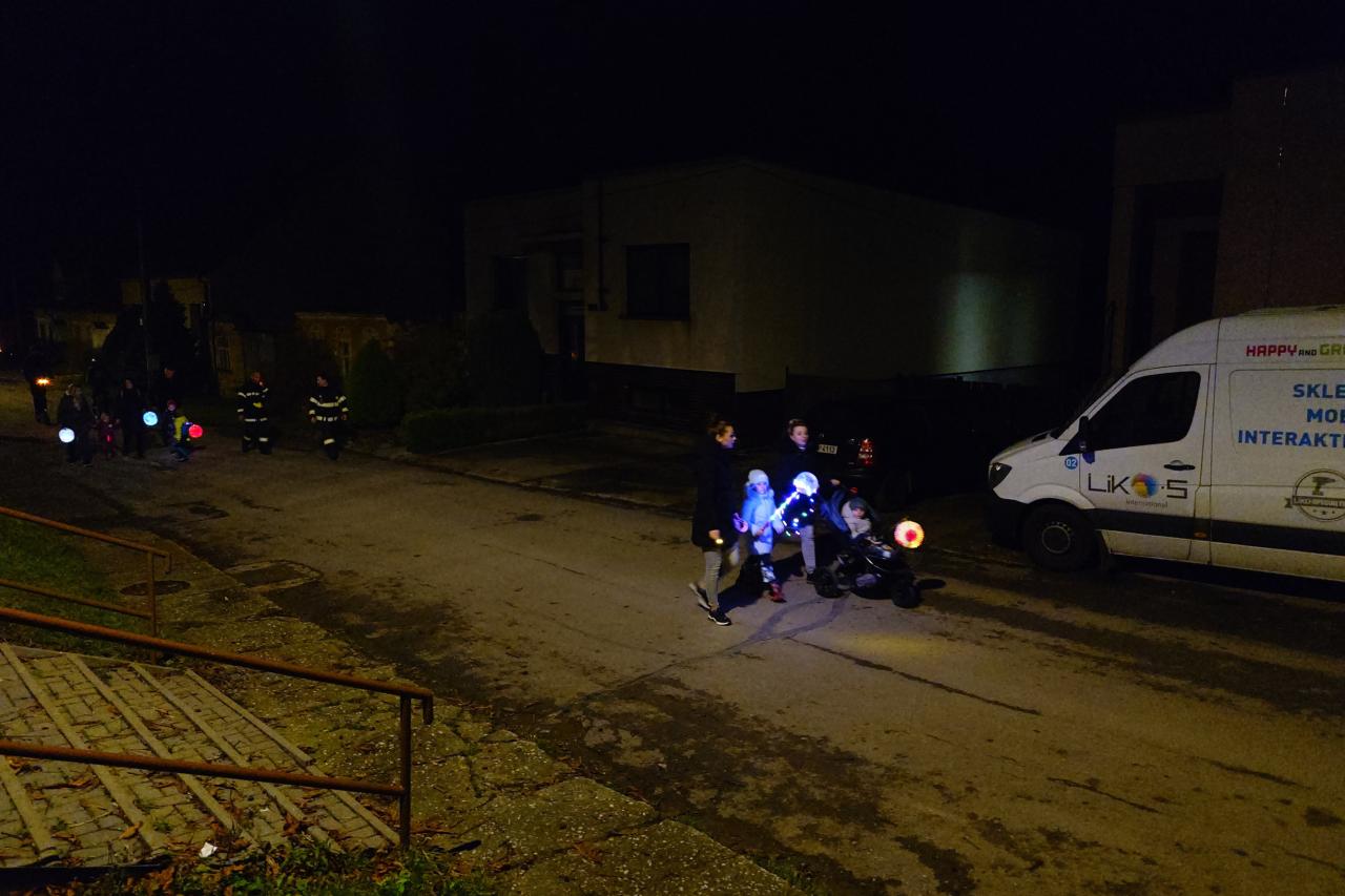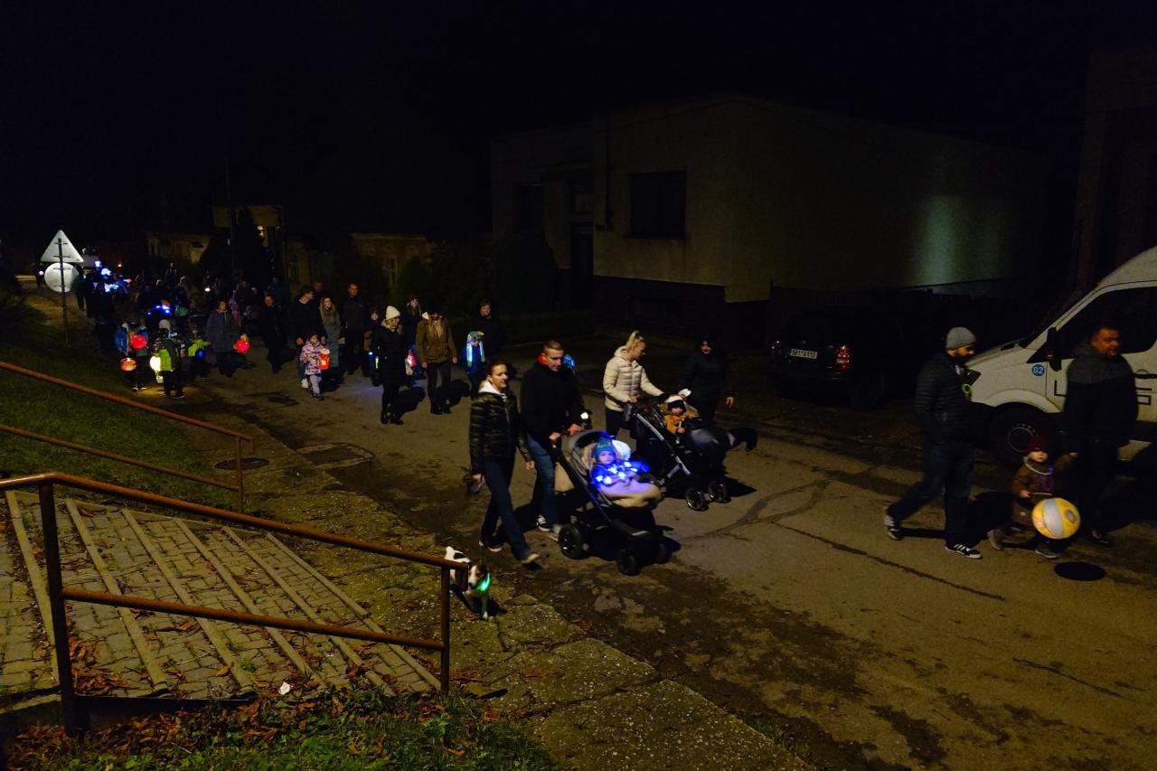 Fotografie z lampionového průvodu, který se tentokrát konal výjimečně 16.11.2025. Trasa byla zakončena na fotbalovém hřišti, kde bylo drobné občerstvení a na závěr byl připraven ohňostroj.