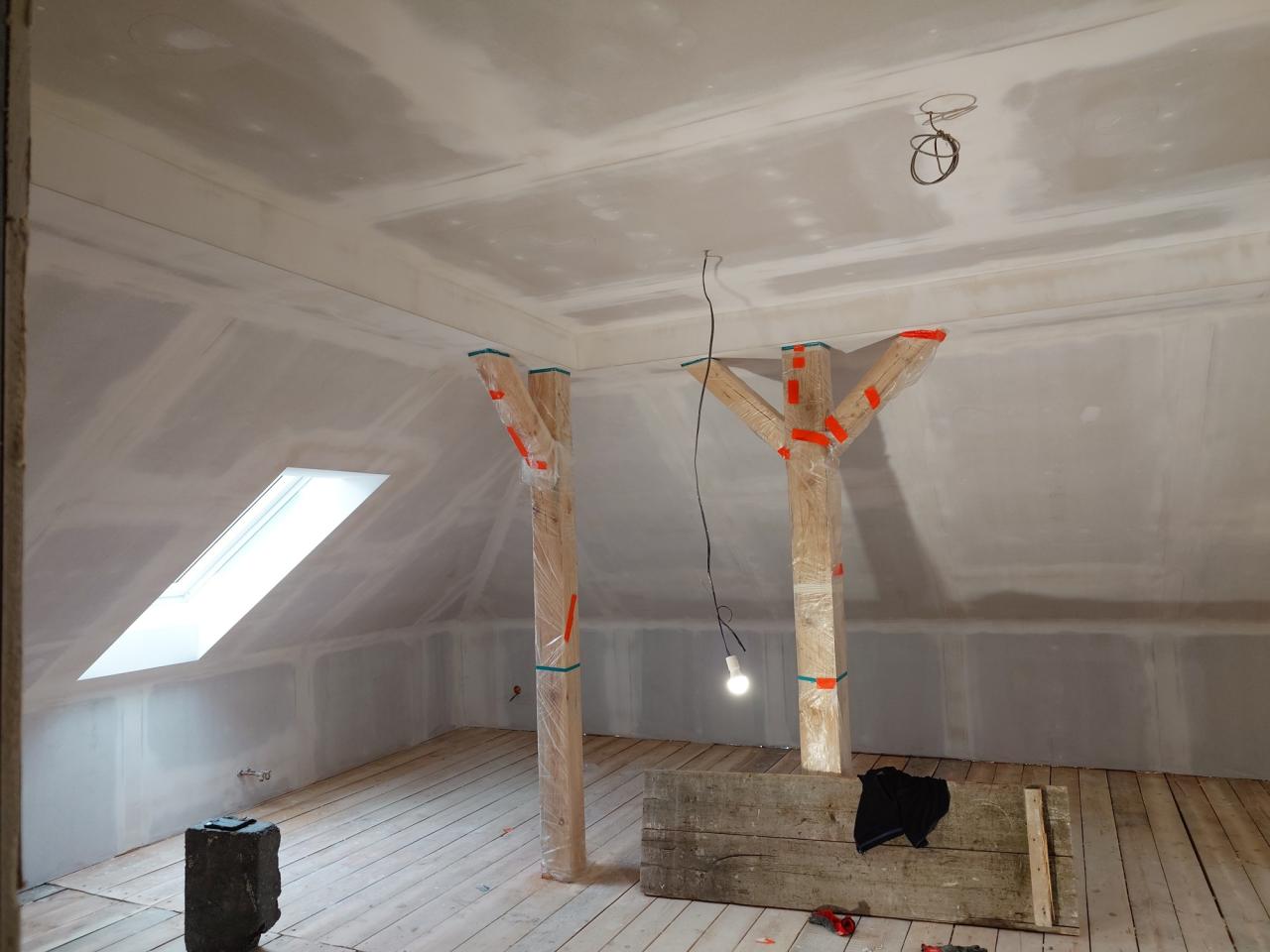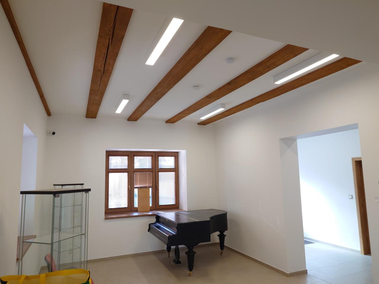 V dalších etapách rekonstrukce pokračovaly rozsáhlé stavební práce. Proběhly zednické úpravy, zateplení objektu, výměna oken a dveří, modernizace elektroinstalace a instalace nového systému vytápění s tepelným čerpadlem vzduch–voda. Součástí projektu bylo také vybudování nové otopné soustavy, instalace úsporného LED osvětlení a nový systém přípravy teplé vody pomocí elektrického zásobníkového ohřívače.