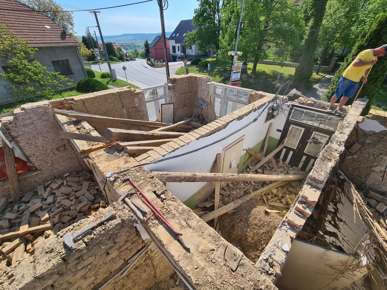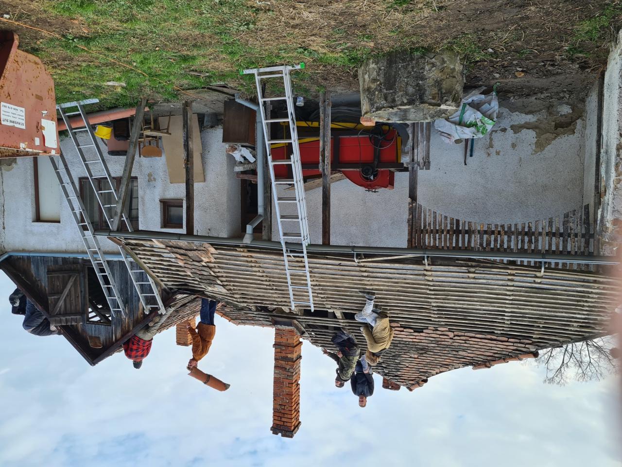První práce proběhly formou brigády místních dobrovolníků, kteří se podíleli na rozebrání původní střechy a krovu. Následně byla provedena výměna překladů, vybetonování věnce a výstavba nového krovu včetně nové střešní krytiny.